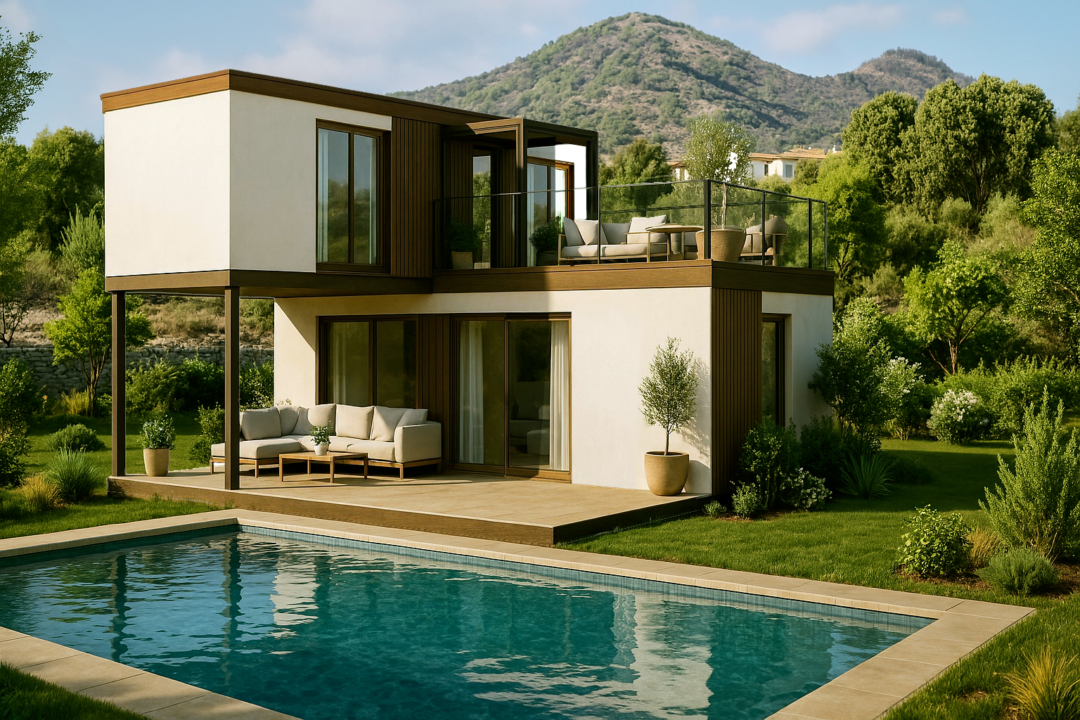 Superficie e distribuzione: – 30 m² su due livelli – Zona giorno luminosa al piano terra – Zona notte o studio al piano superiore – Ampie superfici vetrate per illuminazione naturale – Terrazza e spazi outdoor come estensione dell’abitare.